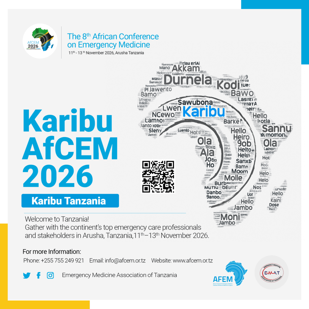 AfCEM 2026, the 8th African Conference on Emergency Medicine, is a premier continental gathering dedicated to strengthening and advancing emergency care across Africa. This edition is proudly hosted under the leadership of the African Federation for Emergency Medicine (AFEM) and the Emergency Medicine Association of Tanzania (EMAT). AfCEM brings together emergency care professionals, researchers, policymakers, and innovators from across Africa and beyond. The conference serves as a collaborative platform where experts and emerging leaders share knowledge, build networks, and develop strategies that improve emergency care delivery across diverse health systems.